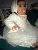 The top bodice of the dress is a masterpiece of design, featuring an intricate flower pattern lace that extends gracefully across the entire dress. The high waist style adds a touch of regal elegance to the outfit, making your baby girl look like a true princess on her special day.